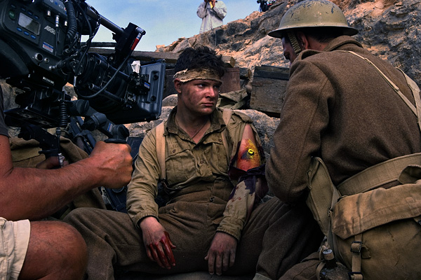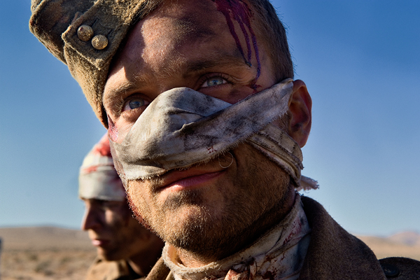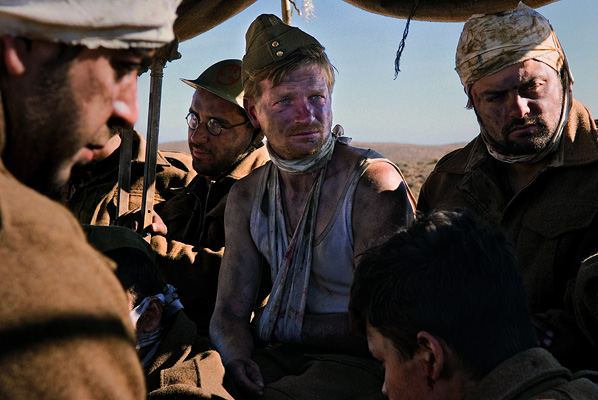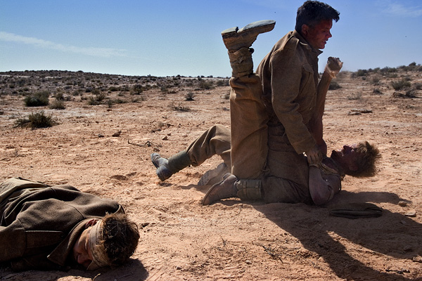 Tobruk: Raněnému vojínu Pospíchalovi pomáhá vojín Lieberman (Petr Vaněk) / Jedga Tebaga 10/2007
