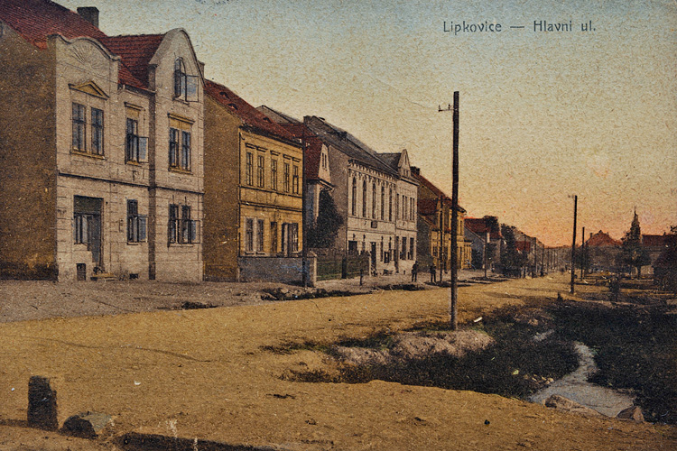 Hlavní ulice (později Čsl. armády) na kolorované pohlednici / Libkovice asi 1925