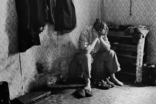 Nemocný Stanislav Břicháček ve svém novém bytě / Lom 04/2000