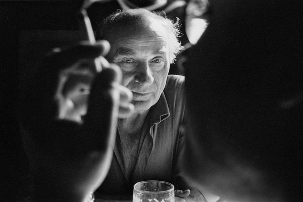 Karel Krejčí v místní hospodě hovoří s Janem Kroupou pro knihu o Libkovicích / Libkovice 09/1993
