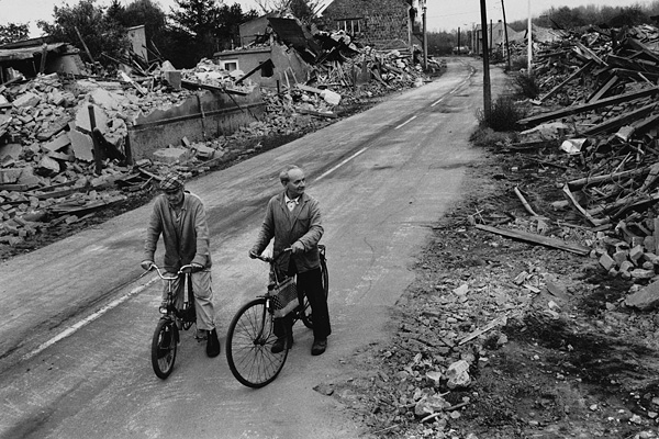 Karel Krejčí a Josef Schöfel ráno po bourání v ulici Čsl. armády / Libkovice 14. října 1993