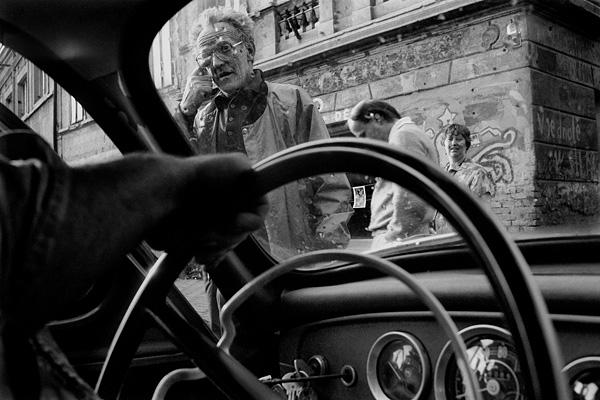 Po Majálesu mne sběrač Pazdera vezl do Lomu, pohled na starostu Břicháčka a novináře Pavla Koukala / Libkovice 05/1993