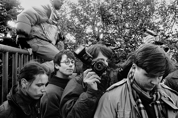 Novináři před domem pana Krejčího / Libkovice 21. října 1993
