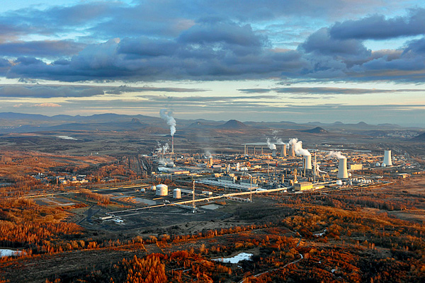 Městská i průmyslová zástavba a krajina ideálně v jasném světle bez mraků |